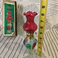 Vintage oil lamp in original box Red glass kerosene lamp Made in Hong Kong