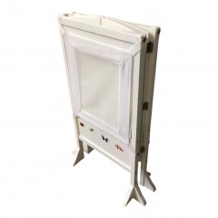 Design: The tower has star and circle shape cutouts on the sides and includes a chalkboard detail on the front.