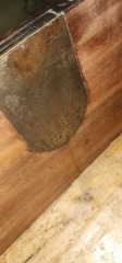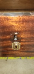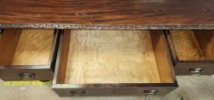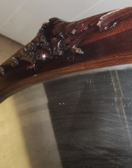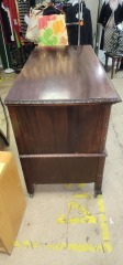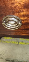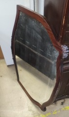 The dresser has scratches and scuff marks; the mirror does too. The dresser is approximately 55.5 inches wide, 38 inches tall, and 26 inches deep. The mirror is approximately 45.5 inches wide and 40 inches tall