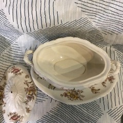 Large Soup Tureen W/Ladle Wedgwood & CO LTD Bristol Covered Serving Dish Flowers