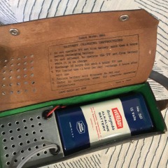vintage Sears portable battery case in good condition with vintage Eveready #561 alkaline rechargeable battery