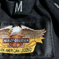 Harley-Davidson nylon windbreaker or rain pants which were produced using the popular "An American Legend" slogan in the 1990s and early 2000s. These pants are typically part of the official Harley-Davidson MotorClothes line and are often designed as rain or over-pants for motorcycle riding.